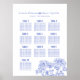 Affiche plan de table d'art dessiné bleu mariage chrysanth