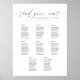 Plan de table de mariage écriture moderne. Panneau de bienvenue. Panneau de placement simple et personnalisé pour 80 invités (8 tables). Cliquez simplement sur le lien "personnaliser davantage", affiché sous la zone de personnalisation du texte à droite, et choisissez votre couleur de fond personnalisée. Ce modèle d'affiche permet de créer rapidement et facilement de superbes éléments pour votre décoration de mariage. Les panneaux peuvent être agrandis, il existe de nombreuses tailles au choix, ainsi que des options de cadrage et de mise en page personnalisés.