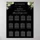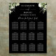 Plan de table de mariage élégant avec fleurs et verdure noir et blanc avec des noms de style signature, ce plan de table chic et stylé peut être personnalisé avec vos informations en lettrage moderne. Conçu par Thisisnotme©