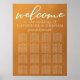 Ce plan de table de mariage or rustique avec 16 tables présente une typographie blanche élégante superposée sur un dégradé de tons terre discrets. Des teintes simples d'orange clair et de marron suivent les tendances actuelles de l'automne pour un mariage bohème cette saison. Complétez le look avec votre écriture minimaliste sur ce panneau de bienvenue à dégradé de couleurs.