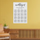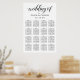 Affiche de plan de table de mariage moderne et chic noir et blanc avec un design typographique noir élégant et des accents de calligraphie gras et un texte personnalisé qui peut être personnalisé avec un monogramme des noms des mariés, noms des invités organisés par leur numéro de table attribué.