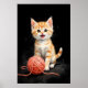 Affiche Playful Kitten Cat with Yarn Watercolor Print