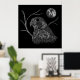 OEuvre d'art noir et blanc d'un faucon pèlerin avec pleine lune et branches d'arbres. Utilisez le modèle de texte pour ajouter une initiale ou un monogramme à la lune. ♡ Idyllfire