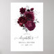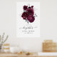 Poster d'accueil de la douche à nuptiale à fleurs argentées bordeaux et fausse parties scintillant aux accents de prune personnalisable selon vos spécificités.