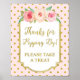Merci pour le popping par pop-corn bar affiche pour baby shower ou fête d'anniversaire en rose clair et des points dorés motif avec bordure or, rose rustique et des fleurs d'aquarelle pêche et des lettres de style manuscrit.