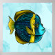 Poster de poisson amusant avec une oeuvre d'art numérique représentant un poisson-ange tropical mignon aux cils longs dans de jolies couleurs bleu et jaune. Grand ajout à un décor de chambre de pépinière à thème Under The Sea.