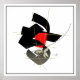 Illustration numérique avec stylo et dessin à l'encre d'un petit poisson nageant entre bâtons abstraits et varech. Couleurs rouges, noires et taupes avec une influence asiatique. Paire avec Little Bird Fly. Artiste, Margaret Loftin Whiting.