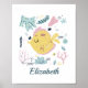 Personnalisez cette adorable affiche pour la crèche ou la salle pour enfants. Il a un thème de poisson rose et jaune et de la vie marine. Ajoutez le nom du bébé/de l'enfant.