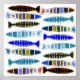 Ecole colorée de design de poisson rayé à customiser, personnalisez en changeant à votre nom sur n'importe quelle couleur arrière - plan