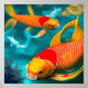 Un design que j'ai réalisé avec un programme d'intelligence artificielle ! L'oeuvre de deux poissons koi orange nageant sous l'eau est une belle représentation de l'astrologie des Pisces. La couleur orange des poissons koi symbolise le courage et la force, ce qui est une qualité que les gens Pisces possèdent. Le mouvement du poisson sous l'eau symbolise la capacité naturelle des Pisces de s'adapter à différents environnements et circonstances. Les deux poissons représentent la dualité du signe Pisces, montrant la capacité des Pisces à la fois pour la logique et l'émotion. Avec ses couleurs vives et ses mouvements doux, cette oeuvre est une représentation étonnante de l'enseigne Pisces.