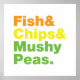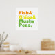 Amusant Humour à emporter en magasin de chips de nourriture ~ Poissons et chips et pois moelleux. Globe Trotters se spécialise dans l'imagerie idiosyncratique du monde entier. Vous y trouverez des Cartes de Voeux, Cartes Postales, Posters, Mousepads et plus encore.