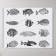 Affiche Poissons tropicaux noirs et blancs Art imprimable