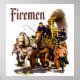 Un grand cadeau pour le pompier que vous connaissez. Un cheval vintage a tiré un moteur de feu à un incendie avec un jeune garçon courant à côté.