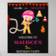 Fille Pompier signe de fête d'accueil Pompier affiche Pompier signe Pompier. Cette bannière de fête d'accueil pompier pour l'anniversaire de la fille est parfaite pour accueillir vos invités à votre fête de pompier! Sympa signe de fête pour la fête d'anniversaire du jeune pompier avec une fille de pompier en casque rose avec un tuyau d'incendie et du matériel de lutte contre l'incendie autour. Sonnez l'alarme et éditez simplement ce modèle facile à utiliser dans le menu Personnalisation.