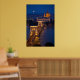 Affiche Pont à chaîne et Pleine lune à la nuit