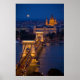 Europe, Hongrie, Budapest. Pont à chaîne allumé la nuit. Crédit : Jaynes Gallery / DanitaDelimont.com