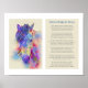 Ce poster a une photo de closeup d'un cheval coloré en bleu, violet, rouge, rose et jaune, et le beau poème Rainbow Bridge for Horses d'un auteur inconnu pour aider à réconforter ceux qui pleurent la perte de leur cheval bien-aimé : Au bord d'un bois, au pied d'une colline, est un pré luxuriant et vert où le temps se dresse encore. Là où les amis de l'homme et de la femme courent, quand leur temps sur la terre est terminé. Car ici, entre ce monde et le monde suivant, est un endroit où les créatures bien-aimées trouvent le repos. Sur cette terre d'or, ils attendent et jouent, jusqu'à ce que le Rainbow Bridge traverse une journée. Ils ne souffrent plus, dans la douleur ou dans la tristesse, car ici ils sont entiers, leur vie remplie de joie. Leurs membres sont restaurés, leur santé renouvelée. Leurs corps ont guéri avec force imbuée. Ils se baladent dans l'herbe sans même s'en soucier, jusqu'à ce qu'un jour ils fusent et reniflent dans l'air. Toutes les oreilles se lèvent vers l'avant, les yeux pointus et alerte. Puis tout d'un coup, on se brise du troupeau. Car rien qu'à cette seconde, il n'y a pas de place pour le remords. Comme ils se voient...une personne...un cheval. Alors ils courent les uns vers les autres, ces amis depuis longtemps Le temps de leur départ est dernier. La tristesse qu'ils ont éprouvée pendant qu'ils étaient séparés s'est transformée en joie une fois de plus dans chaque coeur. Ils se musellent avec un amour qui dernier pour toujours. Et puis, côte à côte, ils traversent...ensemble.