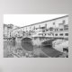 Surplombant le fleuve Arno, le Ponte Vecchio est le plus vieux pont de Florence, construit en 1345. Elle est aujourd'hui bordée de boutiques, notamment de cuir et de bijoux. Montré comme un croquis texturé noir et blanc, il peut être redimensionné.