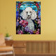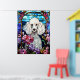 Beau Poodle blanc Portrait Vitrail Design de fenêtre