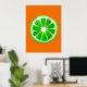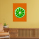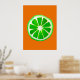 A cute and colourful vibrant vert lime fruit slice from an original painting by artist Sacha Grossel. This large pop style fruit is green and very bright and colourful against a customisable orange coloured background. Quirky et original.