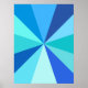 Ce design d'affiche pop art branché et rétro des années 60 a des rayons/sunbursts psychédéliques orange vif tournés dans un motif géométrique. Ce design branché, minimaliste et ultra-moderne comporte douze rayons dans des tons différents de bleu néon. C'est super, bébé.