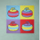 A playful celebration of color, texture, and repetition, this design presents a quartet of stylized curling stones rendered in a bold, painterly pop-art style. Each stone sits within its own vibrant color field, swapping hues and combinations to create a rhythmic visual variation that feels both cohesive and dynamic. The thick, hand-drawn outlines and visible brush-like textures give the forms a tactile, almost folk-art warmth, while the simplified shapes and high-contrast palette lend a modern, graphic punch. The result is a lively, whimsical composition that captures the spirit of curling through a lens of cheerful abstraction and expressive color.