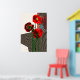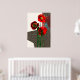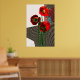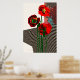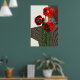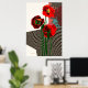 Design de pavot moelleux en gras rouge et noir. Motifs sur motif pour créer des formes florales. Les angles géométriques définissent trois pavots dans un vase.