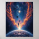 Poster de qualité 5 étoiles au design unique appelé Portail cosmique Il présente une vue colorée et attrayante du cosmos à travers un portail dynamique, par deux visiteurs approchant de l'Univers.