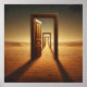 Une oeuvre d'art surréaliste et symbolique représentant une séquence de portes ouvertes s'étendant à l'horizon d'un vaste désert. La lumière du soleil doré projette de longues ombres sur le sable, renforçant l'atmosphère mystérieuse et onirique. Les portes symbolisent les choix, les opportunités et les chemins infinis de la vie, invitant le spectateur à réfléchir à la nature de la réalité, du temps et du destin. Cet article évoque des thèmes de découverte de soi, de transition et de voyage vers l'inconnu.