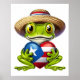 Ce boricua portoricain présente la grenouille coqui tenant un coeur dans les couleurs du drapeau de Porto Rico.