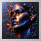 Un portrait abstrait dévoile la beauté du visage d'une femme, rehaussée par un effet en relief qui imite la texture du métal dans des lignes comme les nageoires, et les tons bleu foncé et orange en semi-brillant créent une humeur sombre. Dans l'ensemble, une oeuvre d'art extraordinaire pour vos espaces.