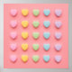 Ce design comporte cinq rangées de coeurs de bonbons de couleur pastel.