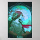 Affiche Portrait femme vert art nouveau ai design sur