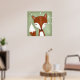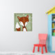 Un tableau numérique d'un renard capricieux est visible contre l'arrière - plan vert à grains de bois. Des petites fleurs blanches sont visibles sur les vignes accrochées à droite. De belles peintures aux couleurs douces sont parfaites pour n'importe quelle zone boisée, que ce soit une crèche pour bébé, une garderie ou une salle de jeux.
