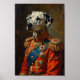 Un portrait royal audacieux représentant le dalmatien en tant que noble commandant de brigade de pompiers. Inspiré par les peintures à l'huile classiques, le design met en valeur la robe tachetée emblématique de la race et l'héritage historique de la caserne de pompiers avec des détails d'uniforme cérémoniel et un style royal.