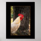 Cette affiche montre un coq blanc de Rhode Island curieuse près d'un tronc d'arbre. Des bordures Brown et noires complètent le look. Customisez cet objet ou achetez comme prévu. Image stock www.freepik.com