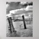 L'affiche "Posts in the Snow" est une image de deux poteaux en bois dans la neige avec des nuages moelleux épais par un jour ensoleillé dans l'arrière - plan. Fait en noir et blanc.