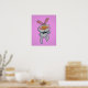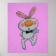Cette affiche d'art économique a un lapin lapin blanc avec un gros nez orange donnant un signe pouce vers le haut portant une cravate arc-en-ciel noir sur un fond rose avec un motif de solarium faible.