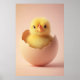 Un poussin jaune moelleux à l'expression adorablement féroce sort d'une coquille d'oeuf fissurée contre un arrière - plan pastel doux. Parfait pour les thèmes de Pâques, les produits pour bébés, ou l'image de marque ludique.