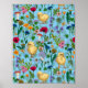 Affiche Poulets et fleurs sauvages sur le bleu bébé