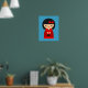 Poupée traditionnelle japonaise Kokeshi dans un design rouge et bleu. Thème japonais très mignon