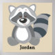 Affiche personnalisée adorable pour la chambre d'enfant avec fond beige personnalisable et un Raton laveur de la forêt avec un sourire mignon. Personnalisez la couleur de fond, le nom, la pièce, ou ajoutez votre propre texte, cette affiche fait un beau souvenir pour votre enfant spécial ! Tous nos produits peuvent être conçus sur mesure pour répondre à vos besoins sans frais supplémentaires. Contactez-nous simplement via notre magasin. Produits coordonnés disponibles : demandez-nous !