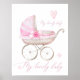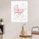 Affiche Poussette Fille Nouveau-Né Nursery Aquarelle Rose