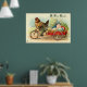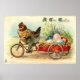 poussin vintage sur vélo transportant des oeufs de Pâques.
