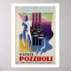 Récemment retouché et restauré à partir d'une affiche de voyage italienne vintage d'origine. Pozzuoli est une ville et une commune de la ville métropolitaine de Naples, dans la région italienne de Campanie. C'est la ville principale de la péninsule phlégréenne. Pozzuoli a commencé comme la colonie grecque de Dicaearchia. La colonie romaine fut fondée en 194 avant JC, et prit le nom de Puteoli.