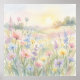 Une prairie paisible remplie de délicates fleurs sauvages resplendit sous la lumière douce d'un soleil levant. Des coups de pinceau doux et des teintes pastel créent une scène de campagne rêveuse où les fleurs se balancent silencieusement dans l'air matinal.