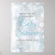 Des flocons de neige douces tombent sur votre baby shower, saupoudrent ou couples de détails de douche, mis dans un texte élégant en bleu bébé et gris fusain sur un arrière - plan d'hiver magique, ce signe d'accueil chic est idéal pour votre événement spécial. Conçu par Thisisnotme©