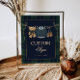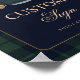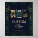 A charming baby shower table sign featuring classic green and navy plaid with a teddy bear and preppy baby clothes. A simple, timeless detail for an elegant celebration.