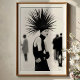 Faites une déclaration audacieuse avec cette impression d'art noir et blanc captivante, chef-d'oeuvre de la mode avant-gardiste et de l'expression artistique. La figure centrale, une vision de l'élégance énigmatique, attire l'attention avec son extraordinaire et épicé chef-d'oeuvre noir qui rayonne de l'air dramatique. Vêtue d'un haut chic noir en col roulé, de longs gants et ornée d'une ceinture métallique et de bracelets frappants, son look est à la fois minimaliste et incroyablement impactable. Son regard intense et sa silhouette forte sont mis en valeur par la superbe palette monochrome à contraste élevé sur un fond blanc propre, avec des figures doucement floues dans l'arrière - plan suggérant un monde vibrant et invisible. Cette oeuvre est parfaite pour ajouter une touche de dramatique sophistiquée, de luxe moderne et d'attrait de haute mode à votre salon, chambre, bureau ou espace créatif. Un choix idéal pour les collectionneurs d'art et les passionnés de mode qui apprécient les récits visuels uniques et puissants.