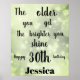 Pretty Green Sparkle personalised 30th Birthday Add name Poster.